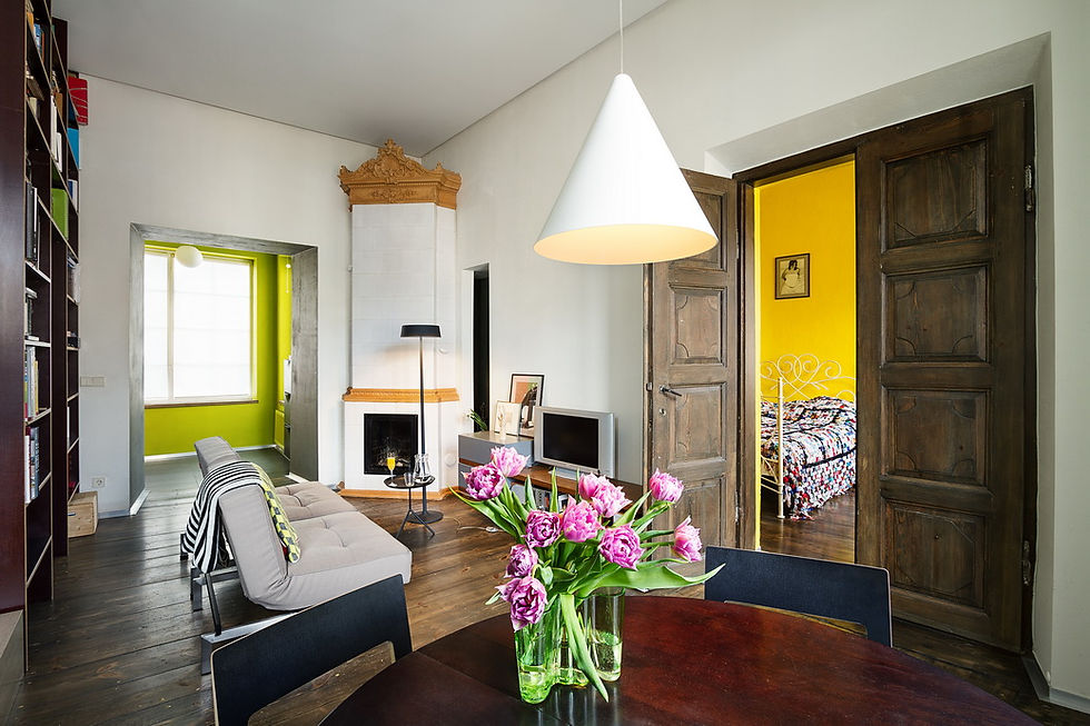 В старинном доме всегда найдется место сюрпризам, а уж в старинном доме в центре Вильнюса – и подавно. Если не верите, спросите Макса Фрая, написавшего «Сказки старого Вильнюса». Или автора интерьера Руту Багдзевичуте: в небольшой квартире под позднейшими наслоениями обнаружились аутентичный деревянный пол и целых два камина! Из каминов, правда, «выжил» один, но и его было достаточно, чтобы понять, вокруг чего будет выстраиваться новый интерьер.