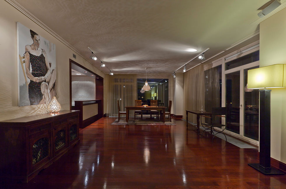 Оформление интерьера задала любовь владельцев квартиры к путешествиям. Они исколесили все Средиземноморье, и напоминанием о каждой поездке стал тот или иной предмет. А поскольку эти вещи из разных по культуре стран, в коллекции присутствовала некоторая эклектичность. Достойного обрамления требовала и другая страсть хозяев – живопись. О том, какое место займет каждая из картин, было известно еще на стадии проектирования. С нелегкой задачей подружить аутентичные комоды, столики, лампы и полотна современных художников блестяще справился стиль ар деко. Присущий ему особый сплав из дорогостоящих материалов, ярких насыщенных цветовых сочетаний, классических четких линий и простых геометрических форм стал идеальным фоном для всех любимых вещей.