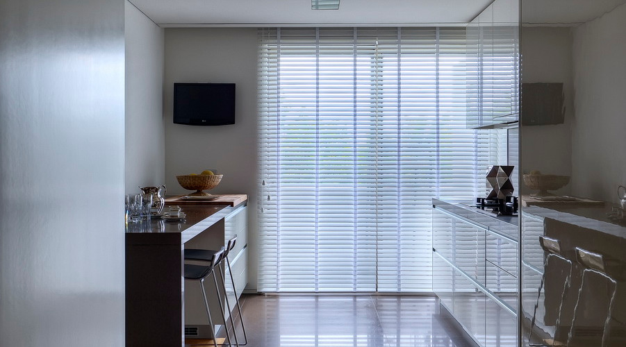 Стиль интерьера характеризуется как современный минимализм, что на практике означает сдержанный фон и яркие интригующие акценты мебели, аксессуаров и предметов искусства. Во исполнение задумок о просторе и проникающем повсюду дневном свете, между прихожей и гостиной убрали стены, заменив их металлическими сквозными экранами, разработанными Кристиной Хорхе де Карвальо. Они формируют общее открытое пространство, одновременно разграничивая функциональные зоны. Стоит отметить, что большинство предметов мебели в интерьере также разработаны Кристиной, использованы также и изделия класса ультра-люкс таких производителей, как Knoll, Autoban, Emmemobili, Vitra и др.