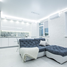 Активная диодная подсветка по периметру квартиры регулируется диммером и создает особенную атмосферу.