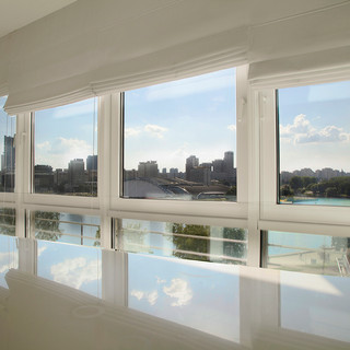 Итоговое планировочное решение трансформировало большую гостиную в три комнаты. С помощью мобильных шпонированных и стеклянных перегородок гостиная зонируется: в двух дополнительных комнатах могут остаться ночевать гости. В каждой из комнат расположен диван с ортопедическим основанием, а также свой сан.узел. Белоснежная барная стойка стала рамой для картины, на которой в течении дня меняется изображение города.